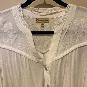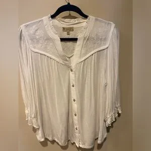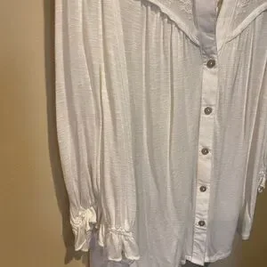 Pretty white top with embroidered top and elastic sleeves. Size L.