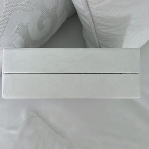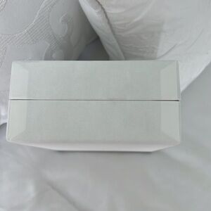 This authentic Amina Muaddi box is perfect for storing jewelry or using as a gift. box for jewelry. The box measures 4.5" x 6.25" wide and 2.75" deep. Inside the top and bottom is padded with salmon color felt like material. The box is new and in perfect condition.