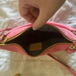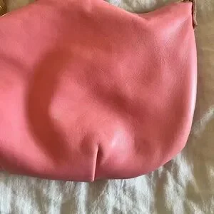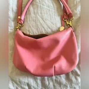 Clare V. Petit Moyen Pink Leather Crossbody Bag - comes with top handle and crossbody strap included. Lined in chambray. Good pre-loved condition - a few areas of mild discoloration (see photos).
