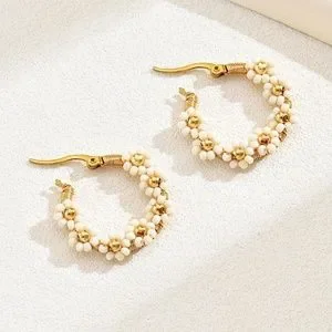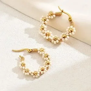 Elevate your style with our Boho Stainless Steel Beaded Flower Hoop Earrings. Perfect for adding a touch of whimsy to any outfit, these earrings are adorned with intricate beadwork. Ideal for birthdays and anniversaries, they make a stylish statement piece. #BohoStyle #HoopEarrings #FloralJewelry #StainlessSteel #GiftIdeas #FashionAccessories