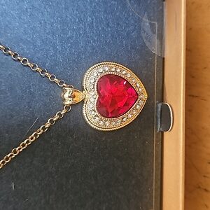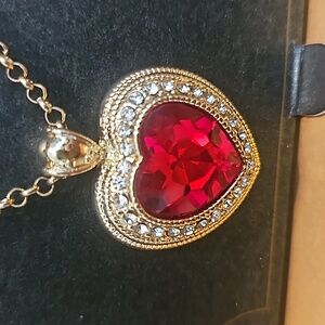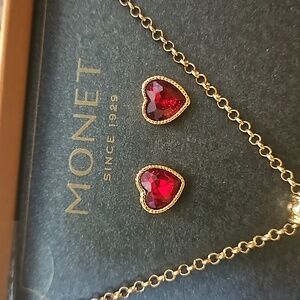 MONET Jewelry Set Heart Necklace and Studs Earrings Set Gold Tone Chain NIB