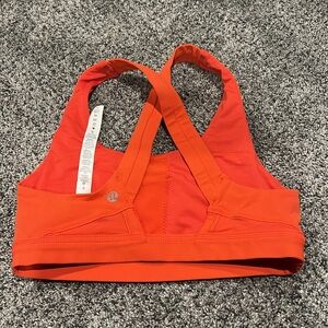 Size 6 sports bra in wine & orange. Note that the wine color doesn’t have the inside tag. (No liner)