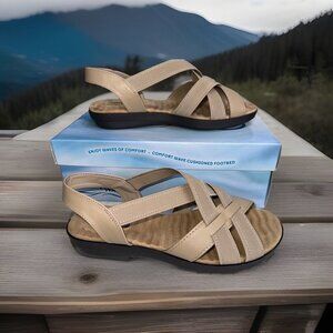 Easy Street Comfort Wave Janice Size 9 W Womens Slip On Sandal Natural Gore