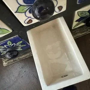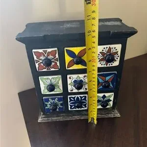 Wooden Tea Trinket Seasoning Cabinet 9 Hand Painted Ceramic Drawers Apothecary
