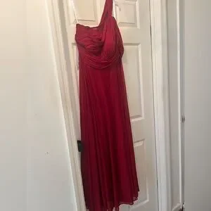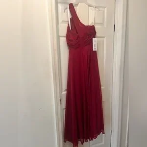 Burgundy A-Line One Shoulder Stretch Satin Bridesmaids Dress