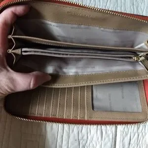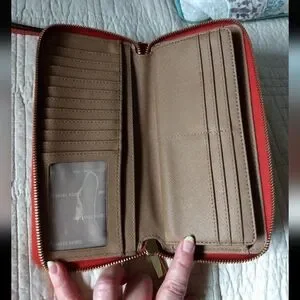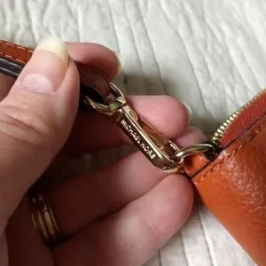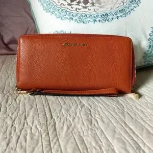 Michael Kors Large Jet Set Pumpkin Burnt Orange Leather Zip Around Wristlet