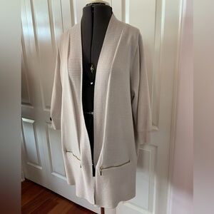 Magaschoni Women’s Sweater Cardigan Mid Length in Beige/Cream Size XL