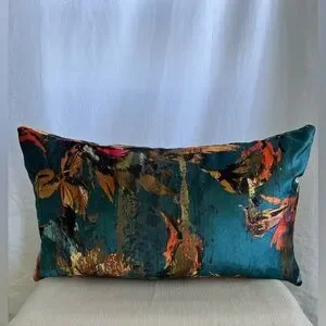 Decorative pillow in Habsburg emerald green with painterly floral impressions
