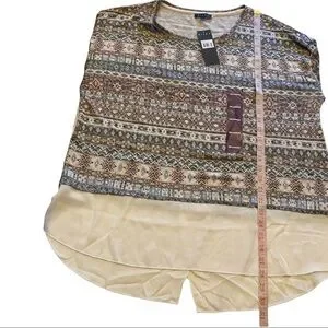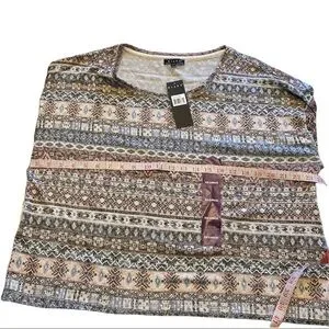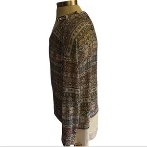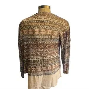 Kiara Sahara Geometric Lightweight LS Sweater w/ White Mock Undershirt Women XXL