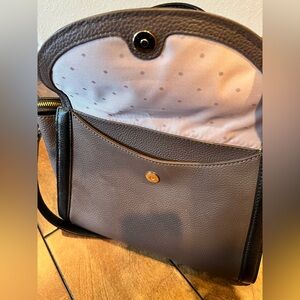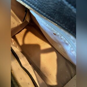 Good condition bag. Not from the outlet store. Purchased in Kate Spade store in Seattle in 2016. There is one nick on the black leather on the front of the bag. Please see photo. Comes with its dust bag which is not shown in the photos.