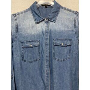 Earl Jean Women's Small Long Sleeve Pearl Snap Up 100% Cotton Denim Shirt