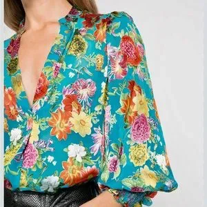 - ALICE + OLIVIA Sheila Floral Satin Blouse size M