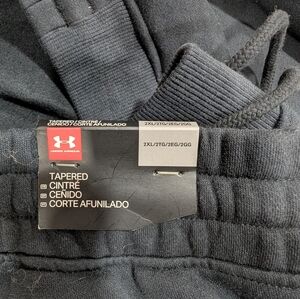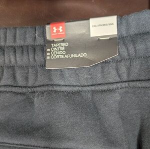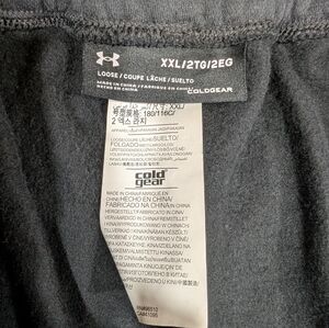 they are dark black. lighting makes them look lighter. color is first picture. they are cold gear thick sweat pants with side pockets, back pocket and the front left pocket has a smaller pocket in it as shown in pictures. draw string waist for comfort .smoke free home