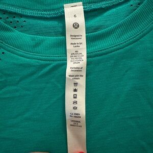 For sale is the Lululemon Train to be short sleeve shirt in Kelley Green (color discontinued), in size 6. Brand new with tags.
