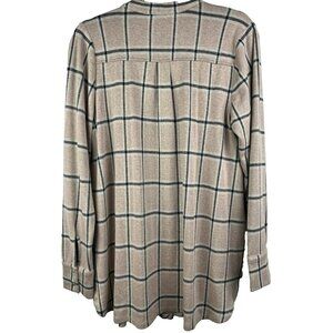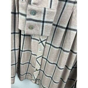 Soft Surroundings Women's Top M Plaid Pink Gray Thick Warm Button Up Long Sleeve