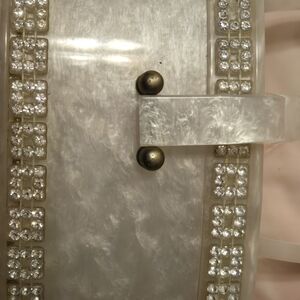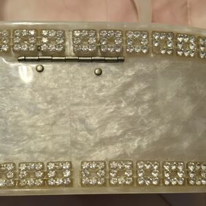 Vintage 1950's Lucite Box Purse White Pearl Oval handbag.Lucite Jewelled Handbag Bag Wilardy Excellent Condition