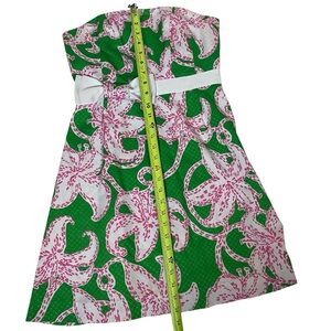 SIZE 4 LILY PULITZER AMBERLY BOW STRAPLESS HOT PINK & GREEN FLORAL DRESS SO CUTE! In VERY GOOD PREOWNED Condition. VIBRANT Colors. NO rips or holes. Zipper Functions Properly. Slight yellowing on bow so priced accordingly. Please view pics carefully for condition, fabric, care instructions & measurements. (Feel free to comment below if additional info is needed). Please browse my closet to BUNDLE & SAVE! Thanks for visiting “In the Past Lane”.