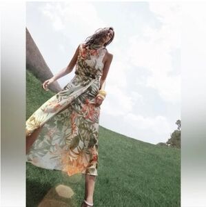 ZARA TROPICAL PRINT MIDI DRESS SIZE S