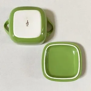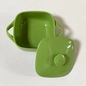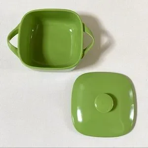 —SMALL MINI INDIVIDUAL SIZED (SEE DIMENSIONS) SQUARE BAKER / CASSEROLE DISH WITH LID IN COLORFUL GREEN