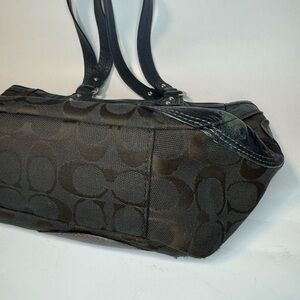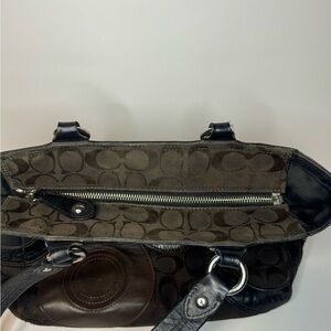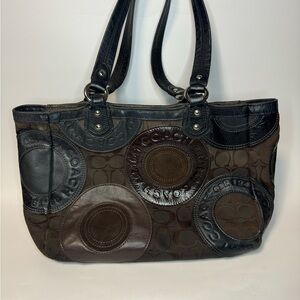 COACH Circle Patchwork East West Tote Black Brown F15466 Shoulder Handbag Purse