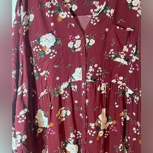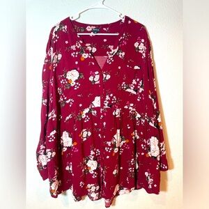 Torrid Burgundy Floral Babydoll Tunic - Size 5