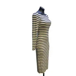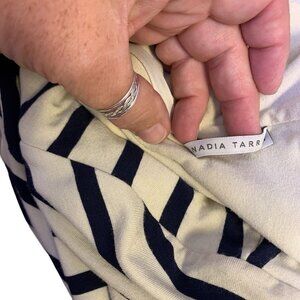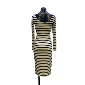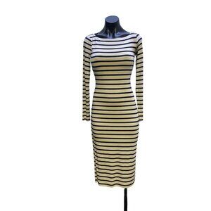 Nadia Tarr Navy & Cream Striped Long Sleeve Midi Dress Size Medium