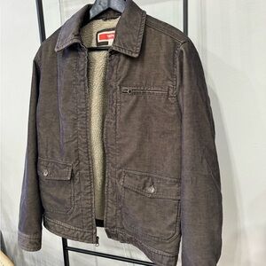 Mossimo Sherpa lined jacket. Has a corduroy type material on the outside and a warm and soft Sherpa lining on the inside. Brown color exterior and tan interior. Size S. Only worn once. Almost new.