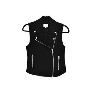 Aritzia Wilfred Black Beaumont Snap Double Notch Collar Silver-tone Hardware Asymmetrical Front Zip Closure Two Front Zipper Pockets Sleeveless Lined Stretch Moto Vest Size 0 - Excellent condition.