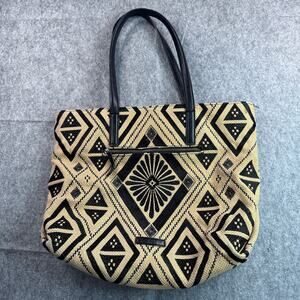 Lucky Brand Cassis Top Zip Tan Black Embroidered Boho Tote. Gorgeous tote to take with you to work, fits laptop, phone and more. Interior zipper pocket and two additional pockets for phone.