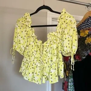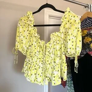 FOR LOVE & LEMONS ditsy yellow floral top size M