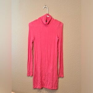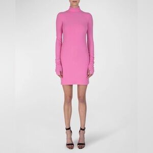 $395 ATM Long Sleeve Turtleneck Mini Dress pink ribbed sweater bodycon