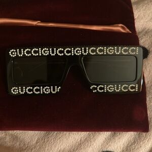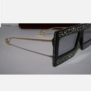 Black frames gold handles and crystals for LOGO. Gucci HOLLYWOOD Forever Crystal sunglasses. Will come with velvet case.