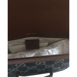 Make a fashion statement with the Gucci Horsebit 1955 Mini Shoulder Bag in Brown Canvas and Leather, a must-have accessory for the modern fashionista. The brown canvas and leather construction of this bag showcase Gucci's signature craftsmanship and attention to detail. Wear it as a crossbody with a boho-chic maxi dress for a laid-back and stylish look, or carry it as a shoulder bag with a tailored suit for a polished and refined ensemble.