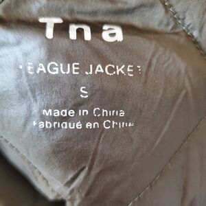 Excellent condition lightweight puffer from TNA. Army green with TNA logo zipper. Goose down filled. Two front pockets. Quilted design. size small.