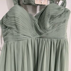 This maternity bridesmaids dress is brand new. In the last pictures, I am wearing it at 9 months pregnant- to see how it would fit and to our surprise, I never got to wear it to the wedding as our baby was induced early.