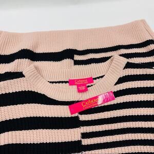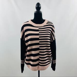 Catherine Malandrino Striped Colorblock Sweater. Funky stripes with classic color block. Crew Neck and Long Sleeves.