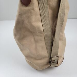 Vintage 90s Ralph Lauren Canvas Drawstring Bucket Bag Backpack Khaki Distressed