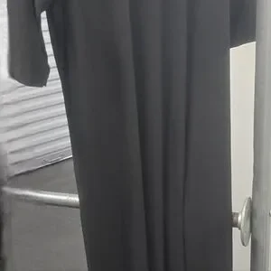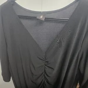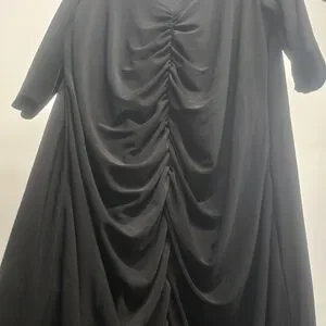 2X-3X V neck/ qtr sleeve, Black ruched Maxi dress w slit in middle.