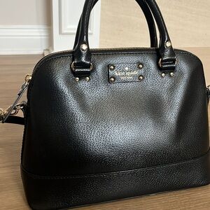 Kate Spade leather satchel bag. This is a timeless bag with both top handles and a removable/ adjustable shoulder strap. Black leather bag with gold hardware, and 3 inside pockets. Open to offers but no trades or low balls please 🖤