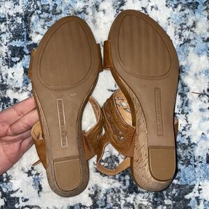 Tan Tommy Hilfiger "Jenesis" Cork Wedge Sandals - 6