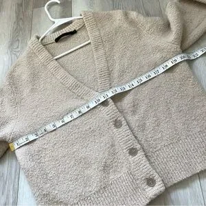 Jenni Kayne Merino Wool Boucle Boyfriend Cardigan Sweater Beige (Small) preppy