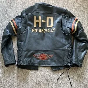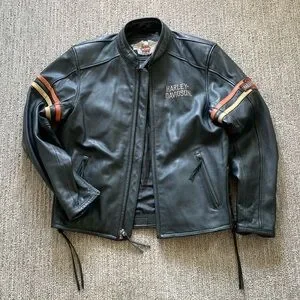 In excellent condition. There is only one small flaw on the sleeve as shown in the picture. The leather and stitching throughout the coat is nearly perfect. Was taken to a Harley store for condition appraisal and it is valued more than what I am listing it for. Since it is gently used, the price is reflected. This would for a men’s medium comfortably and up to a large.