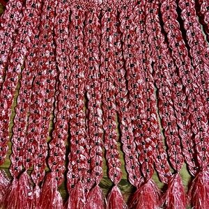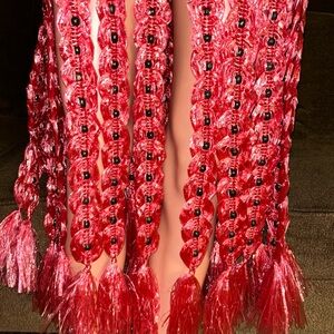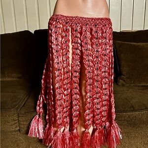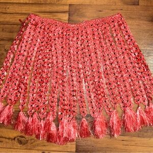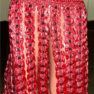 Handmade • Waist: 40-60” (Adjustable) • Pink Plastic Crochet W/ Black Bead Skirt