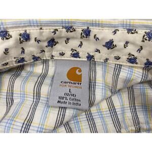 Carhartt Western Pearl Snap Shirt Womens Large Plaid Floral Trim Top WS024 LPW