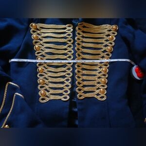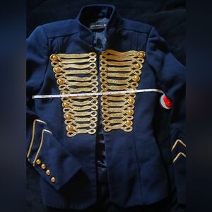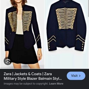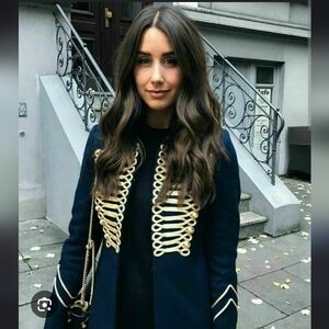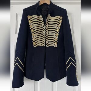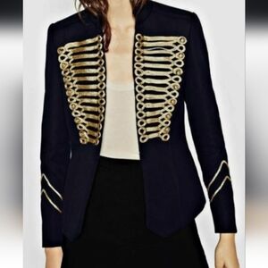 Zara Navy Blue Gold Embroidery Military Blogger Jacket Blazer XS Good Condition, Statement Jacket