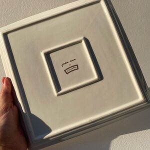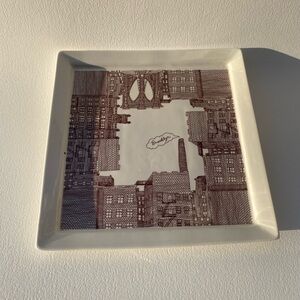 Ceramic 9” square dinner plate with a unique sketch of Brooklyn/NY skyline.