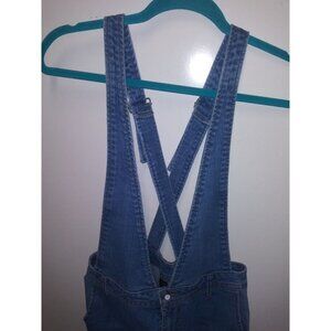 TINSELTOWN Bib Overalls Sz 9 W32 Denim Stretch wide leg Hipster Romper light blue,