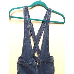 TINSELTOWN Bib Overalls Sz 9 W32 Denim Stretch wide leg Hipster Romper light blu