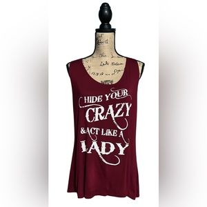 TRAILS Super Soft Maroon Tank Top “Hide Your Crazy/Act Luke A Lady” Size…