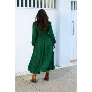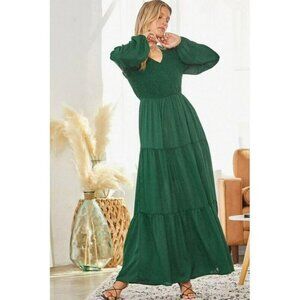 Rio Smocked Long Sleeve Maxi Dress in Hunter Green